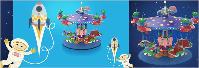 Space Soaring is a space themed flying chair amusement equipment, which can take 10 children, luxurious appearance decoration, and fun sports form.